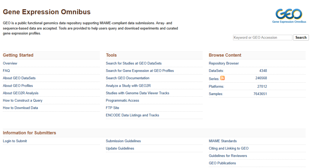 全球最大的基因表达数据仓库,含芯片/RNA-seq等数据