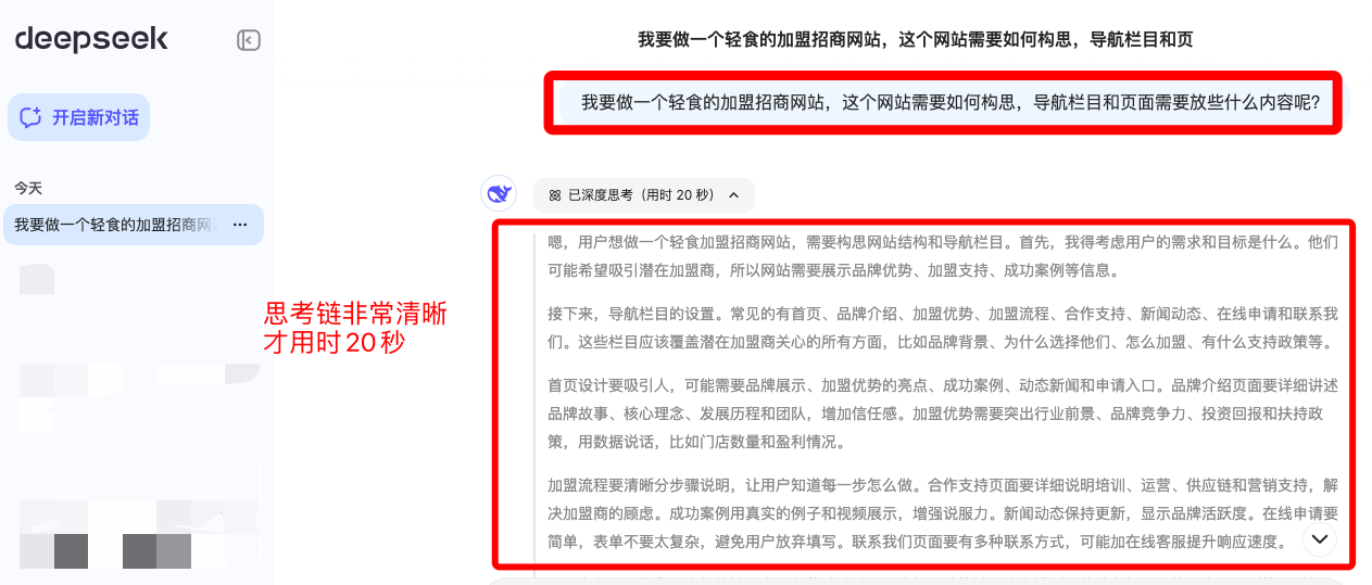 然后,"DeepSeek"用了20秒,就把我昨晚思考了一夜的所有网站框架问题给解决了!天哪!这个效率真的提升90%不止了。
