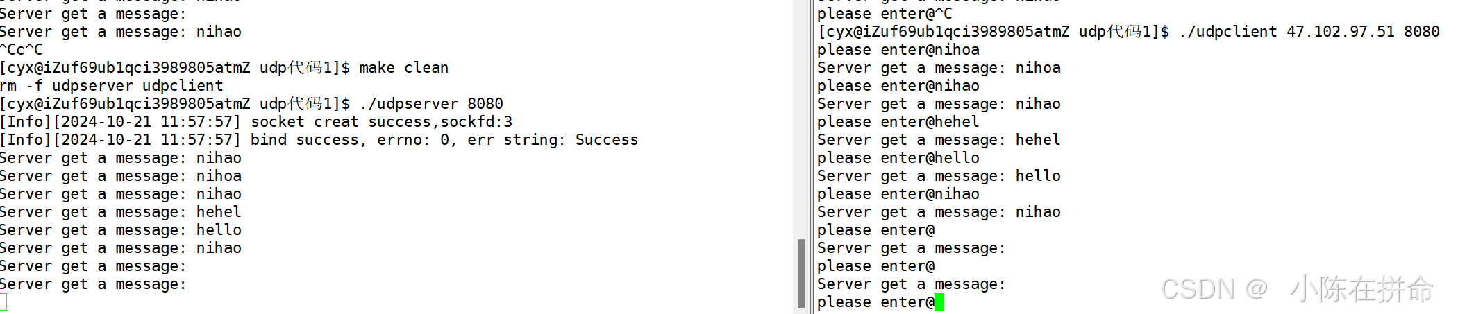 }然后该线程的接受到的消息都会往另一个终端上面写,这样就实现输出和输出分离了!!