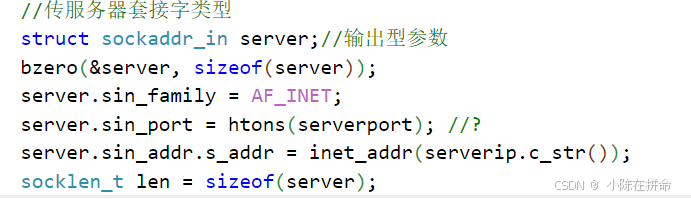 if(bind(_sockfd,(const struct sockaddr *)&local, sizeof(local)) < 0)// socelen_t 类型