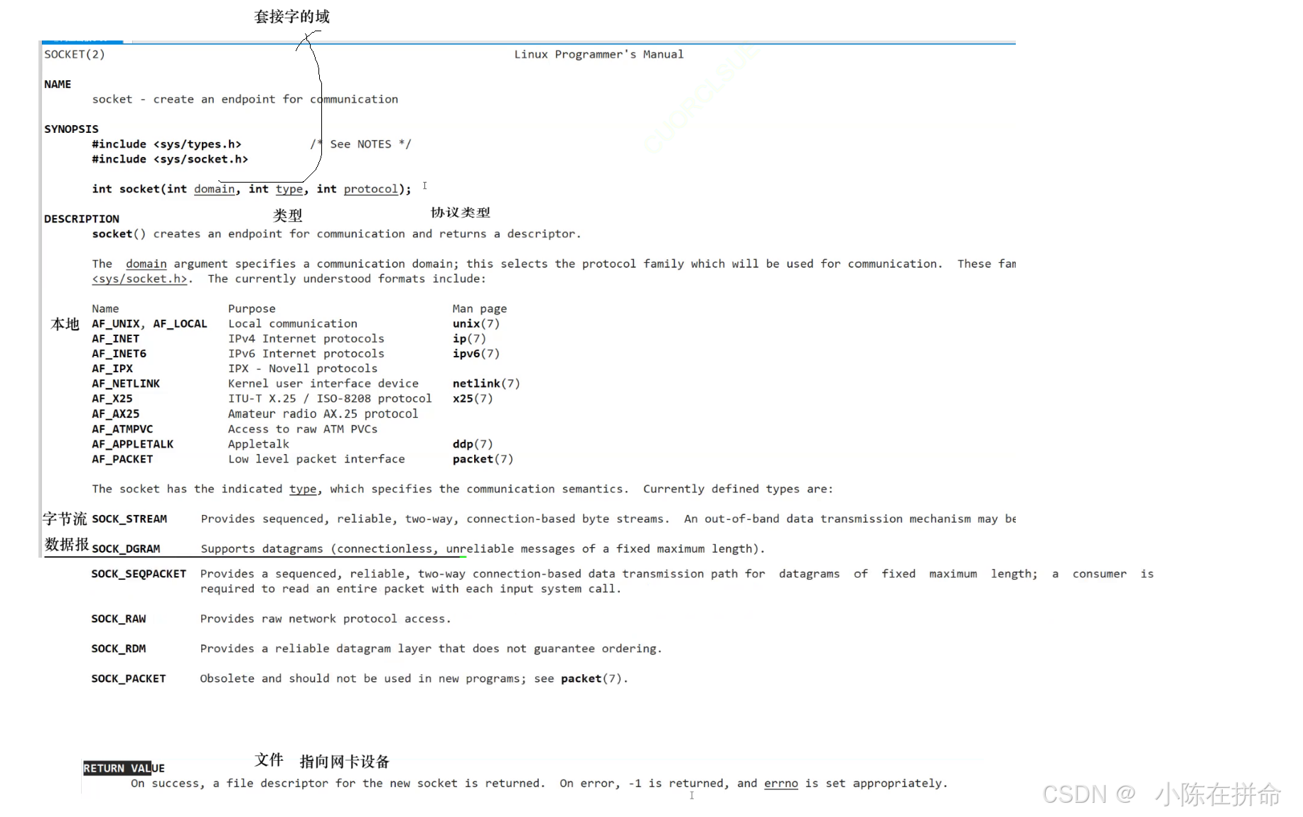 第一个参数 是套接字的域,AF_LOCAL是本地的,AF_INET是网络ipv4的
