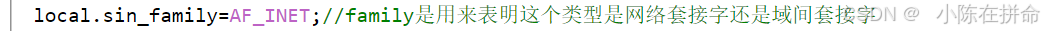local.sin_family=AF_INET;//family是用来表明这个类型是网络套接字还是域间套接字