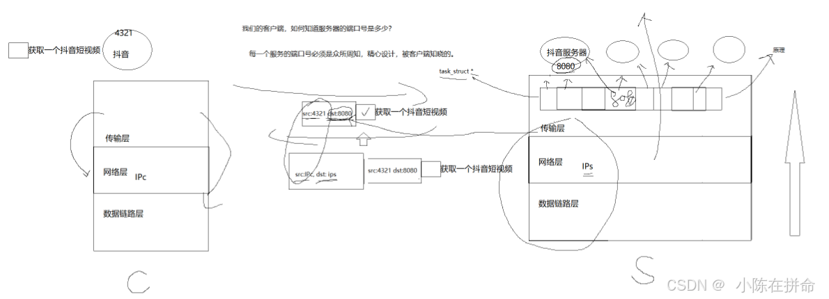 -——>所以端口号必须是众所周知、精心设计、被用户所知晓的!!app和服务端都是一个公司开发的,所以端口号肯定提前已经被内置进去了,我们用户并不需要关心,我们只需要知道打开了这个app然后发送请求,对方就一定可以收到 所以客户端默认必须得知道服务端的端口号,所以无法通信!!