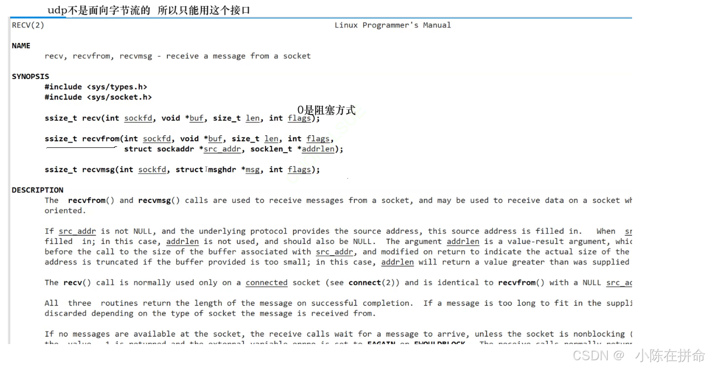 因为udp不是面向字节流的,所以只能用recvfrom接口
