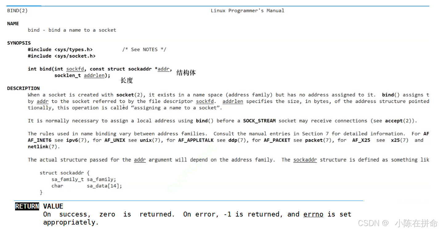 返回值:如果成功了就返回0,如果绑定失败就返回-1
