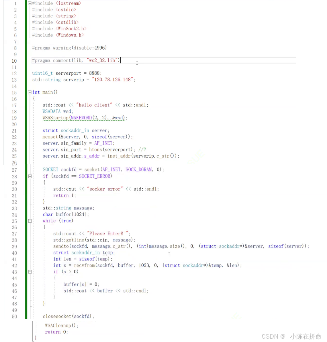 int _sockfd;//创建套接字对应的文件描述符 uint16_t _port;//端口号 string _ip;//服务端的ip地址 bind 0 表示绑定任意地址 bool _isrunning;//服务端是否正在运行
