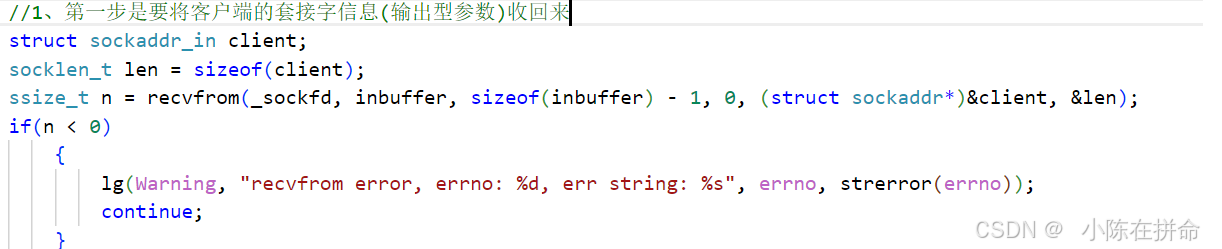 }1、先将客户端的套接字信息收回来,拿到客户端的信息