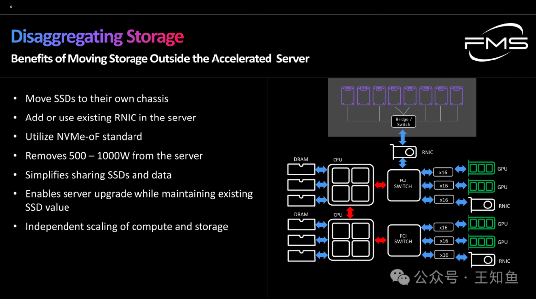 右图示意通过RNIC连接解耦的NVMe-SSD存储资源池,以充分优化加速计算架构。