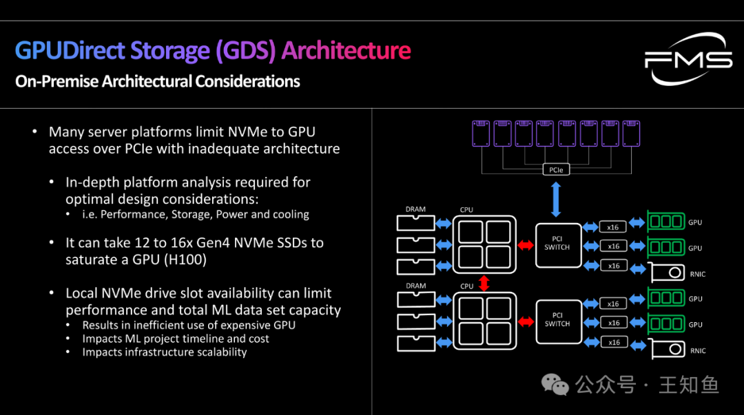 - 许多服务器平台由于架构不完善,限制了 NVMe 通过 PCIe 访问 GPU 的能力。