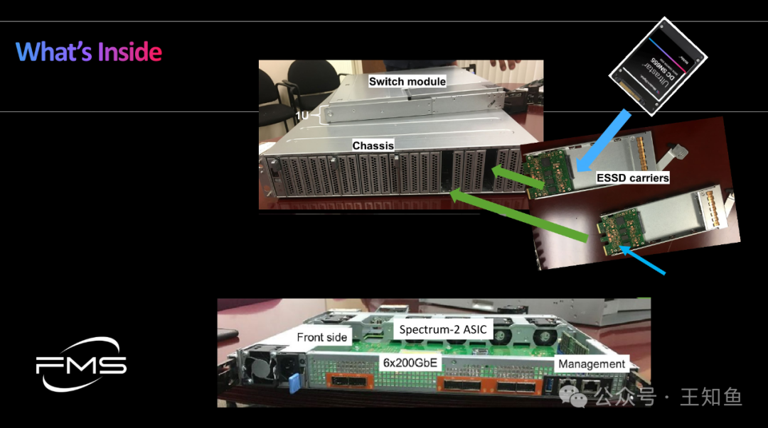 - 24个U.2 SSD,每个SSD通过2x50GbE WDC主板连接——使用32TB SSD时总容量为770TB