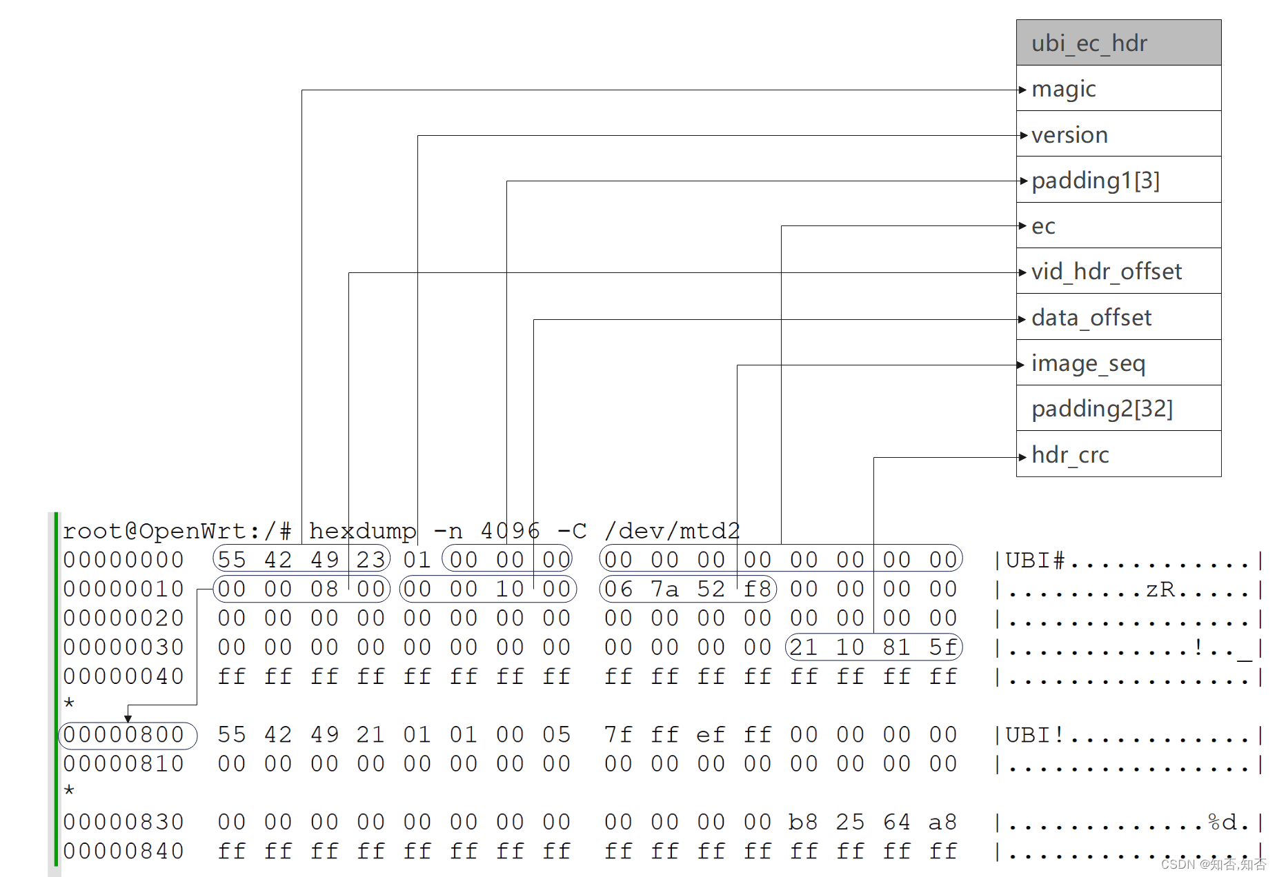 __be32 magic;// 固定值 UBI_VID_HDR_MAGIC 0x55424921