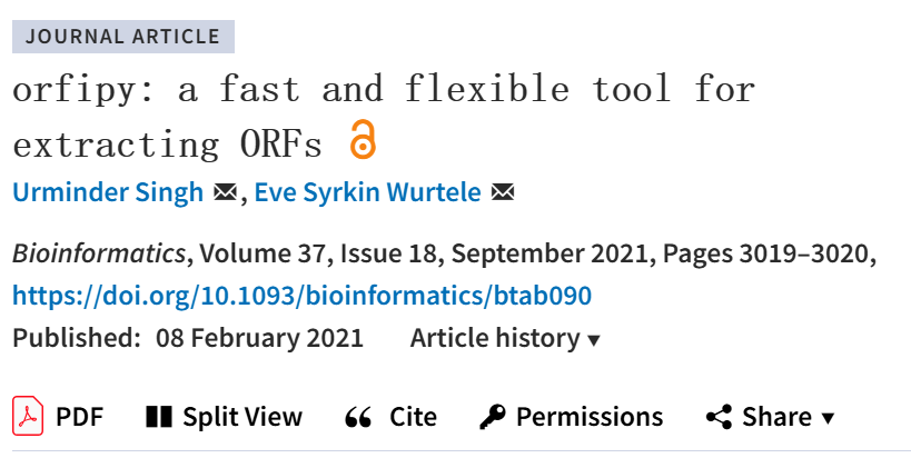ORFipy是一种基于Python的工具,用于从基因组和转录组序列中快速、灵活地搜索开放阅读框(ORFs)。该工具由Urminder Singh和Eve Syrkin Wurtele开发,已发表在《Bioinformatics》杂志上。