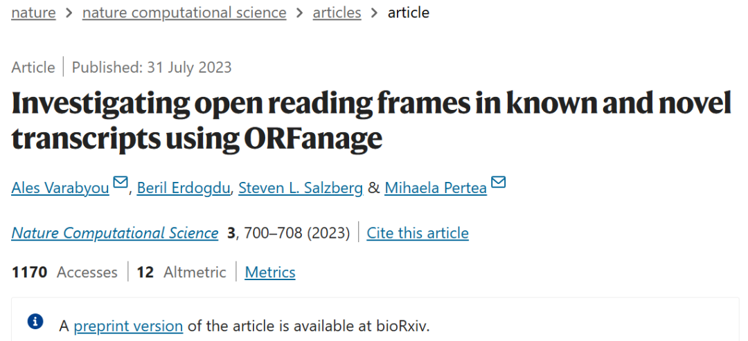论文标题:Investigating open reading frames in known and novel transcripts using ORFanage 网址:https://www.nature.com/articles/s43588-023-00496-1 发表日期:2023年07月31日 作者:Varabyou, A., Erdogdu, B., Salzberg, S.L. et al. 论文摘要:该研究开发了ORFanage系统,用于在RNA测序数据中分配开放阅读框(ORFs),以提高注释准确性。ORFanage通过伪对齐算法实现了高效和准确的ORF注释,能够处理非常大的数据集。