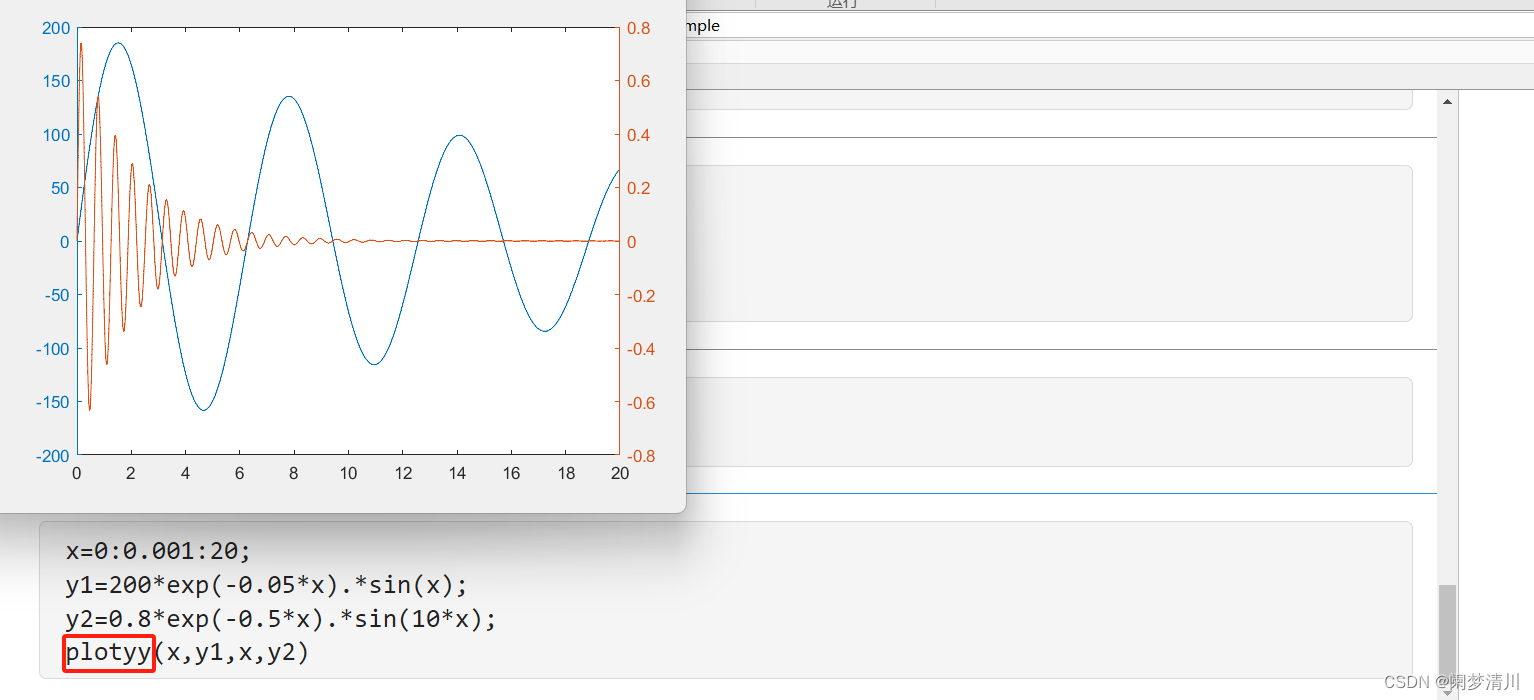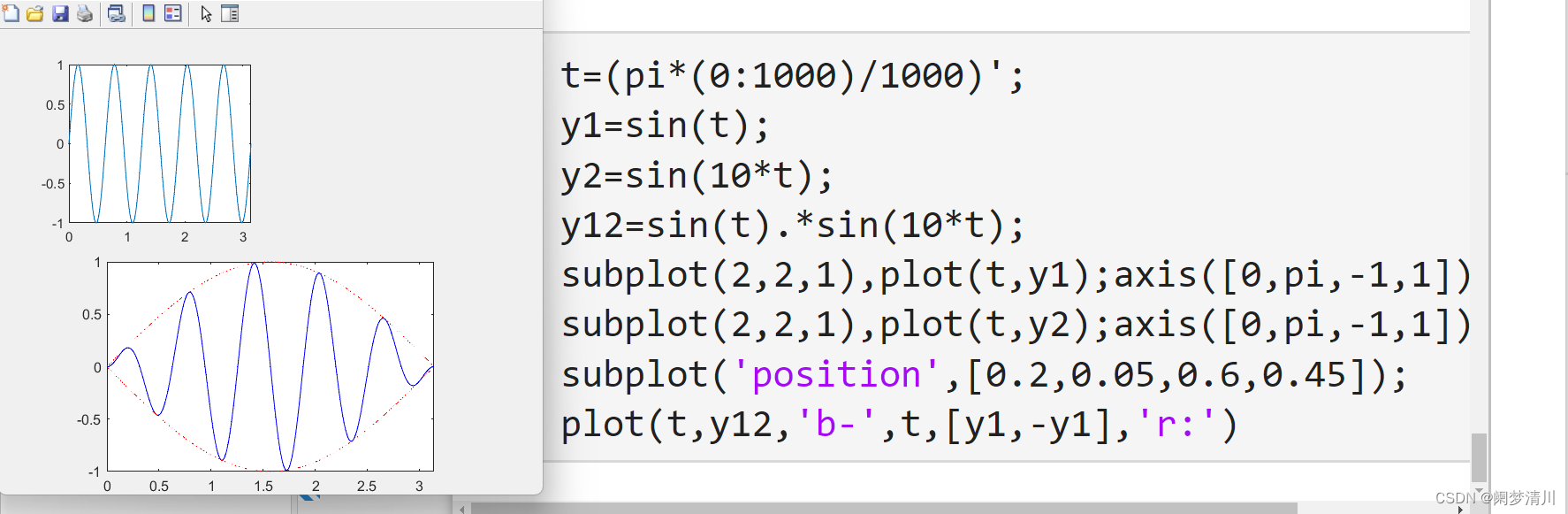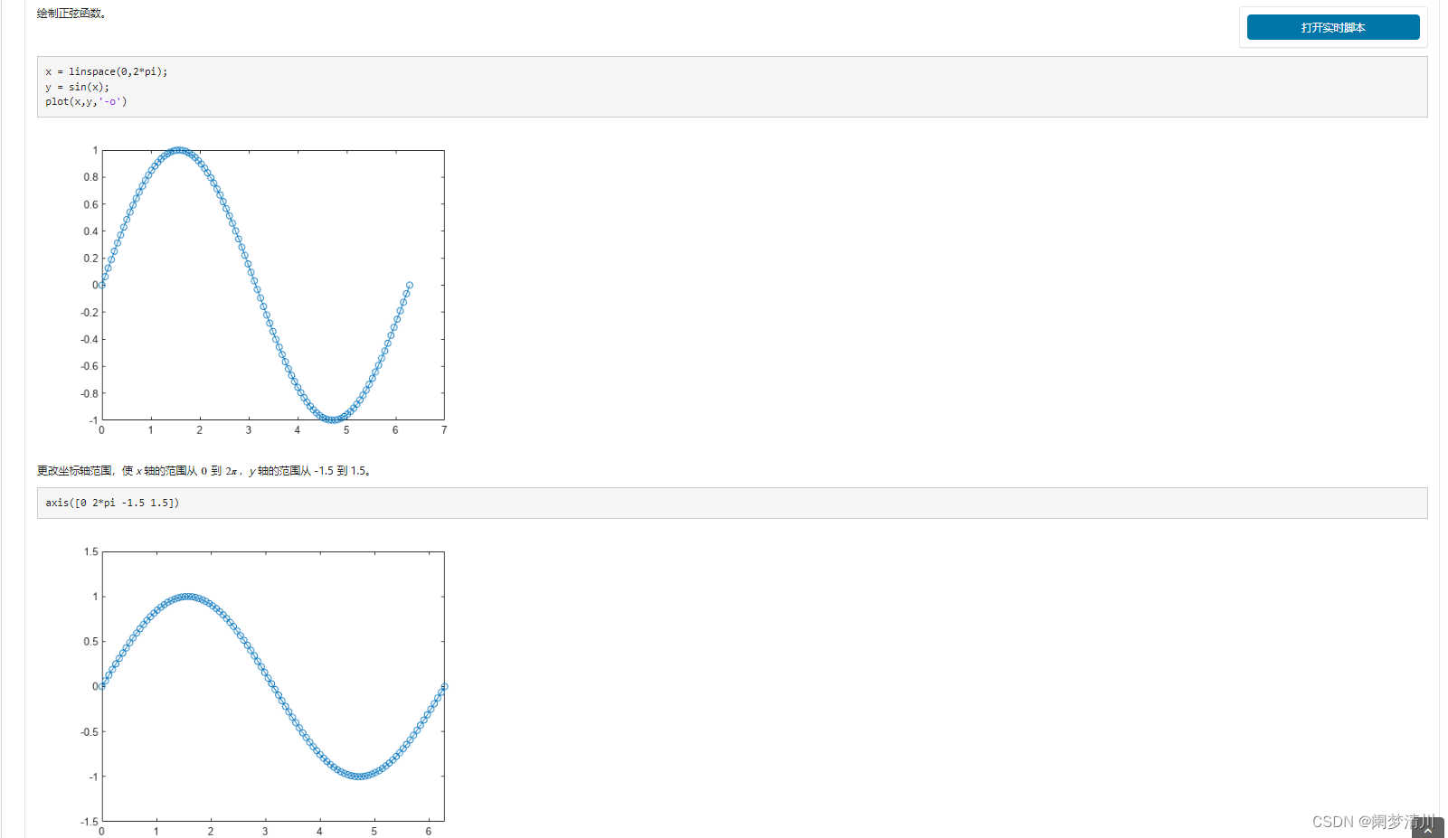 这个是帮助文档里面的一个例子,我们借助这个例子就可以理解该函数的作用,就是把x的坐标范围修改到0~pi,y轴的坐标范围修改到-1~1;