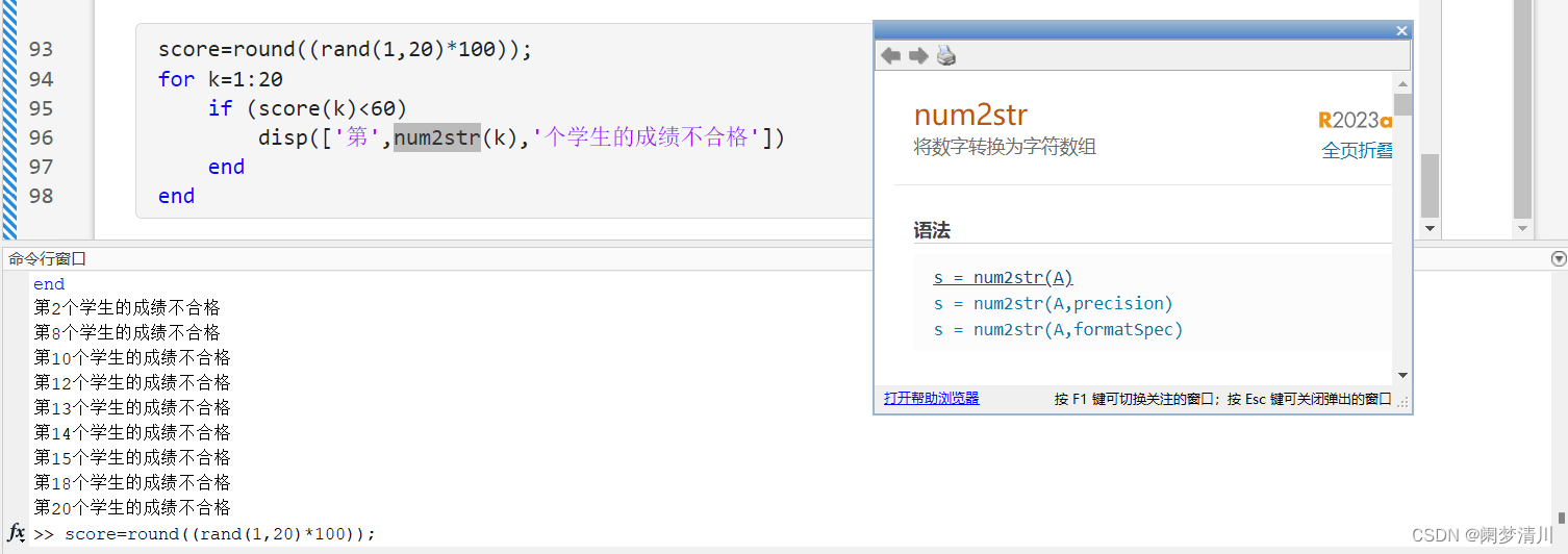 (2)num2str同样是一个函数,把数字转换为字符数组;