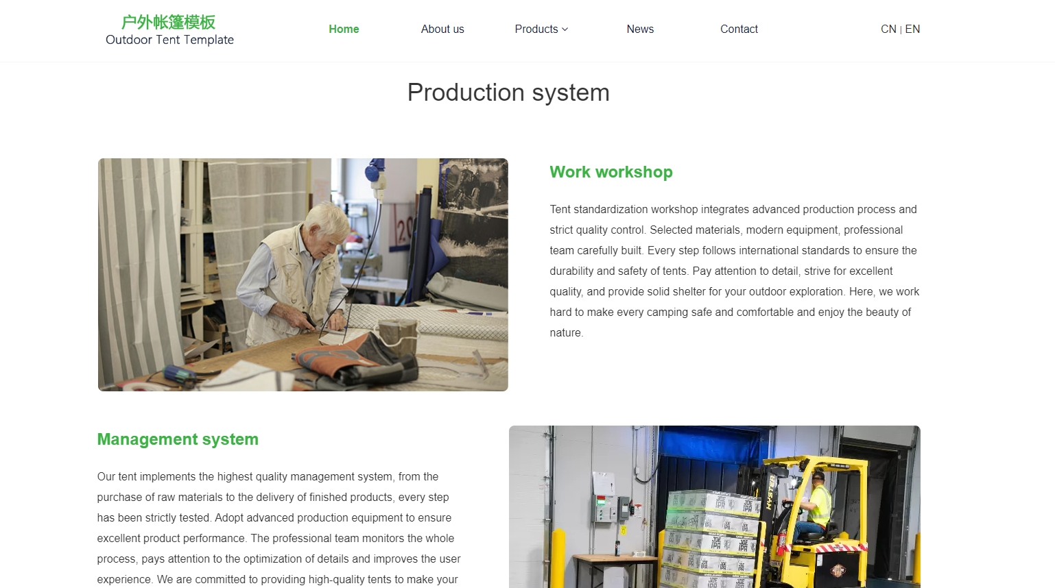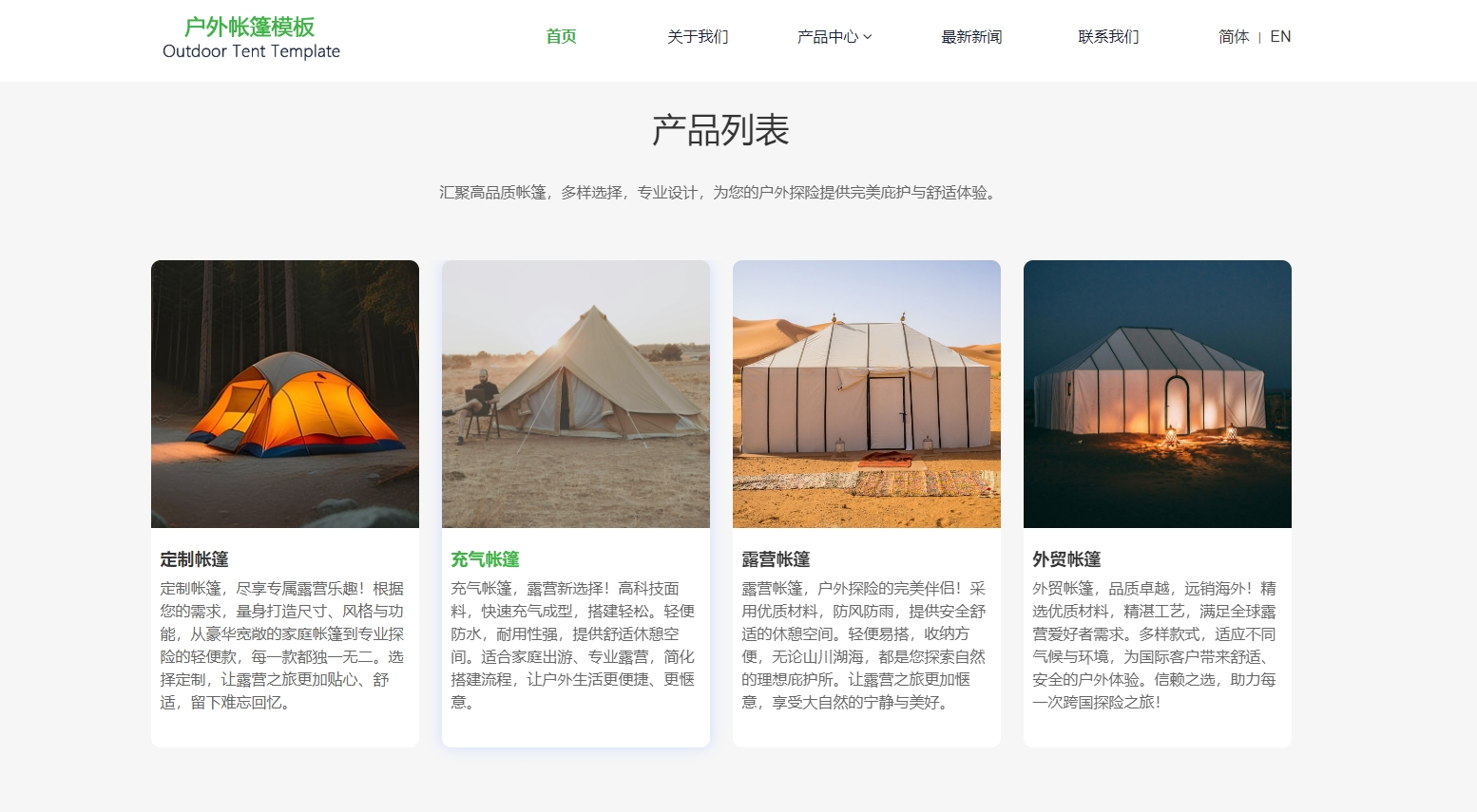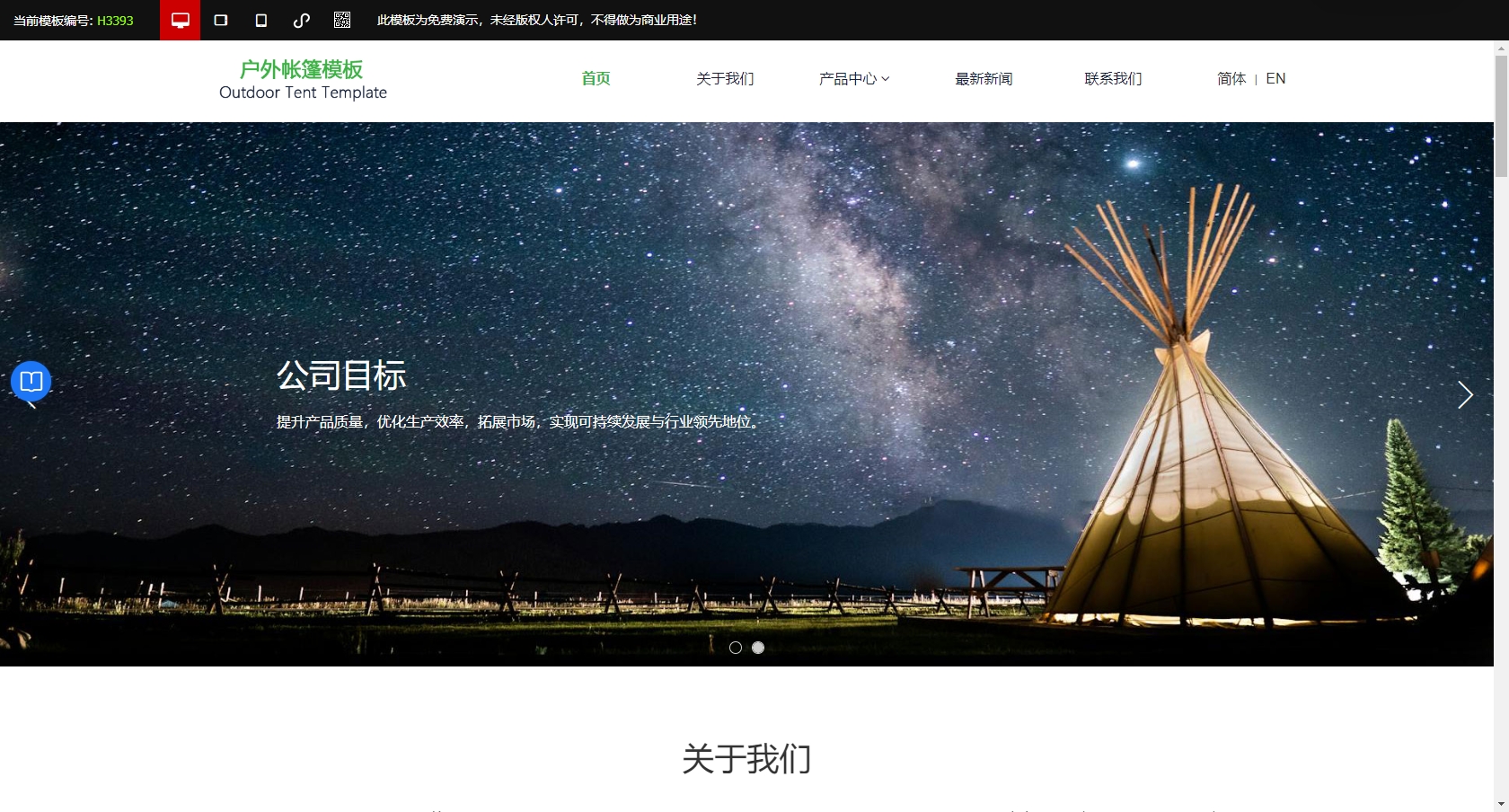 在模板库中,我选择了一个适合户外用品行业的模板,页面布局清晰,支持多语言切换,非常适合海外市场。