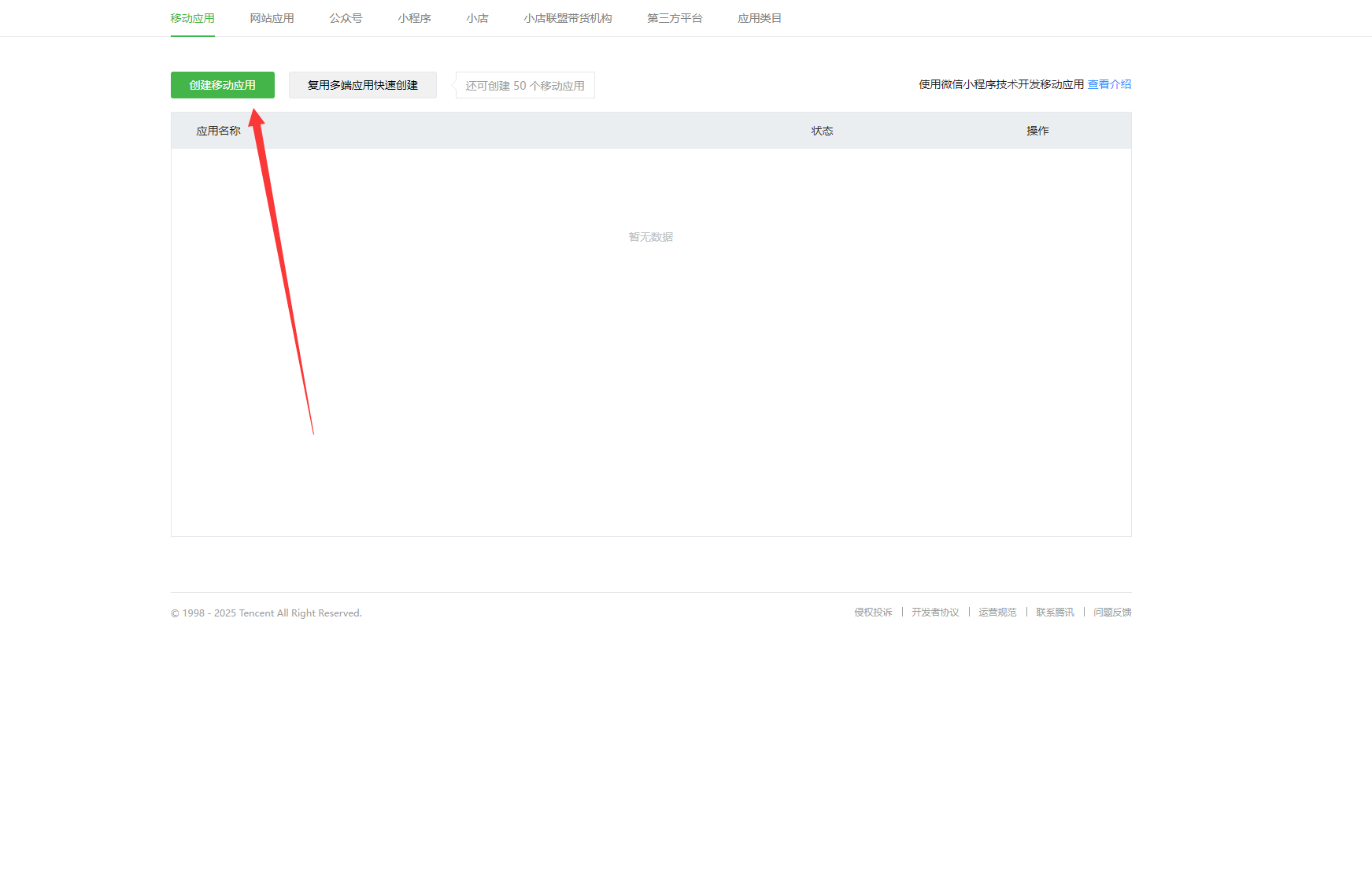 上一篇到认证处就中断了,由于还未认证,现在这里开发平台已经通过了认证,我们进一步创建应用-获取密钥