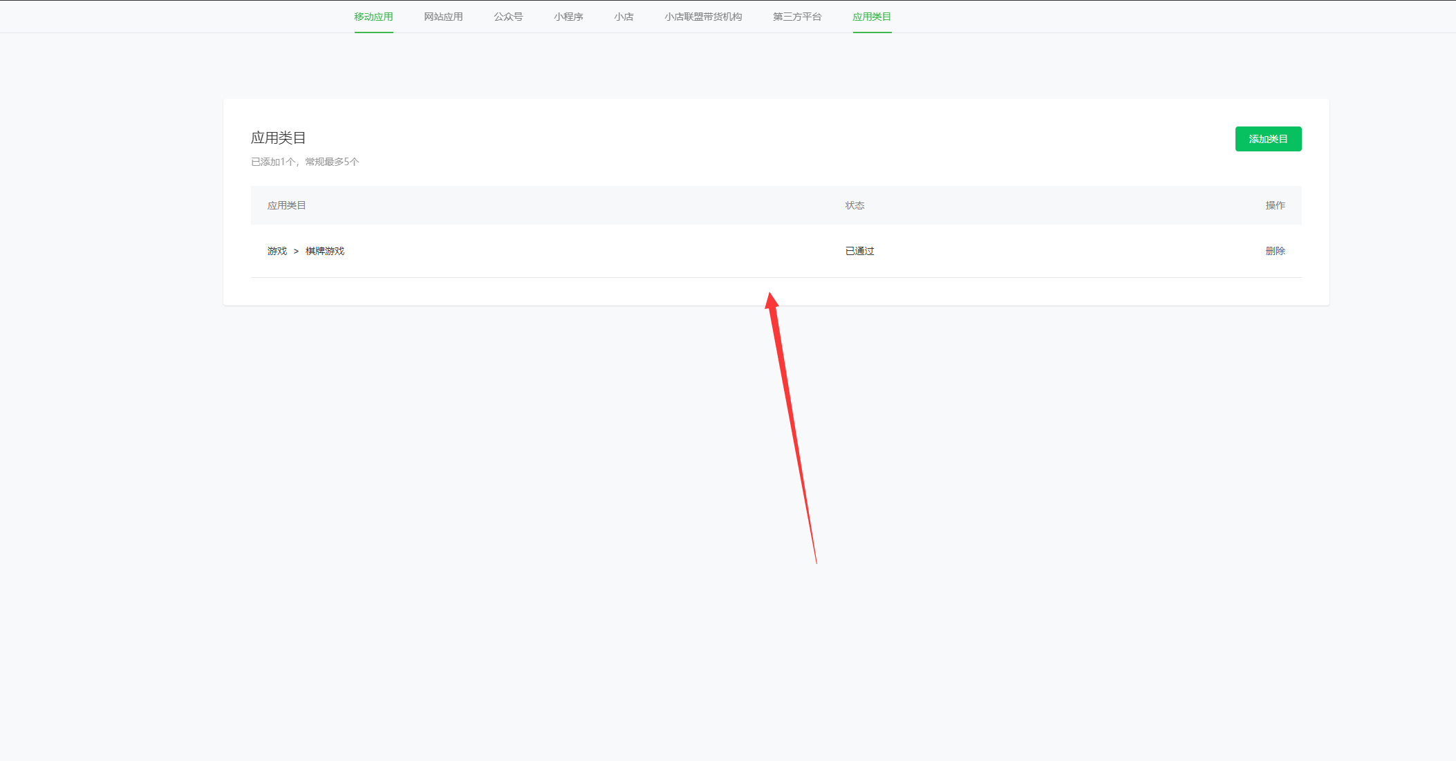 选择对应的类目,申请,并显示通过后可用