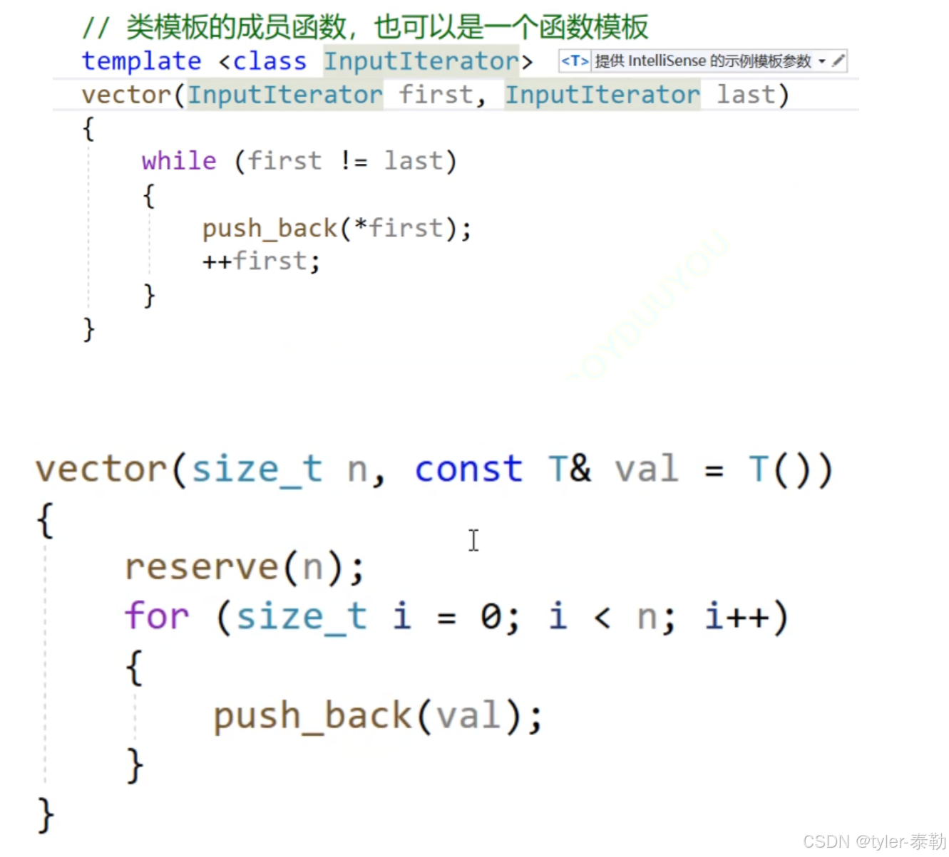 n个val构造会和上面的迭代器区间构造的函数重载冲突,且只有int 和int型与上面模板的迭代器区间构造冲突