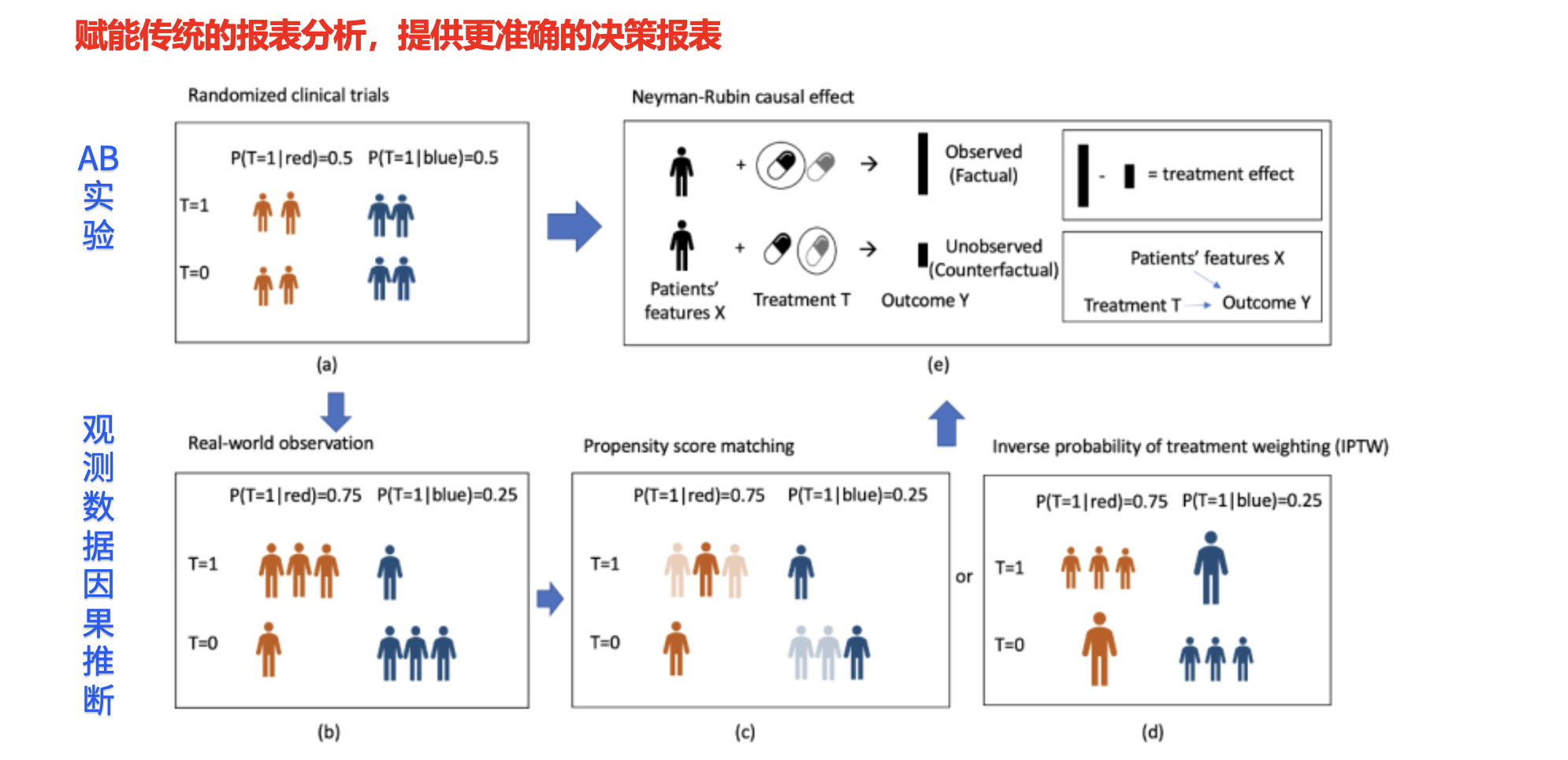 在这种情况下,传统的 A/B 实验无法实施,而直接的报表分析也存在明显偏差。那么,我们应该如何进行合理的评估呢?这时候就要用到观测性因果推断的方法。