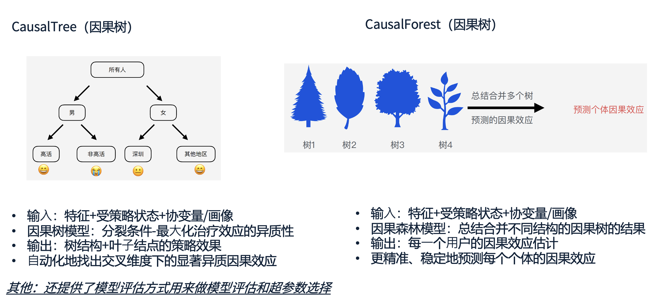 为了更精准地进行异质性分析,我们提供了因果建模工具,包括因果树(Causal Tree)和因果森林(Causal Forest)两种方法。