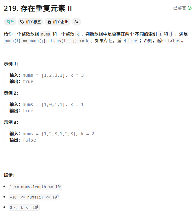 // 判断当前索引与该元素上次出现索引的差是否小于等于k
