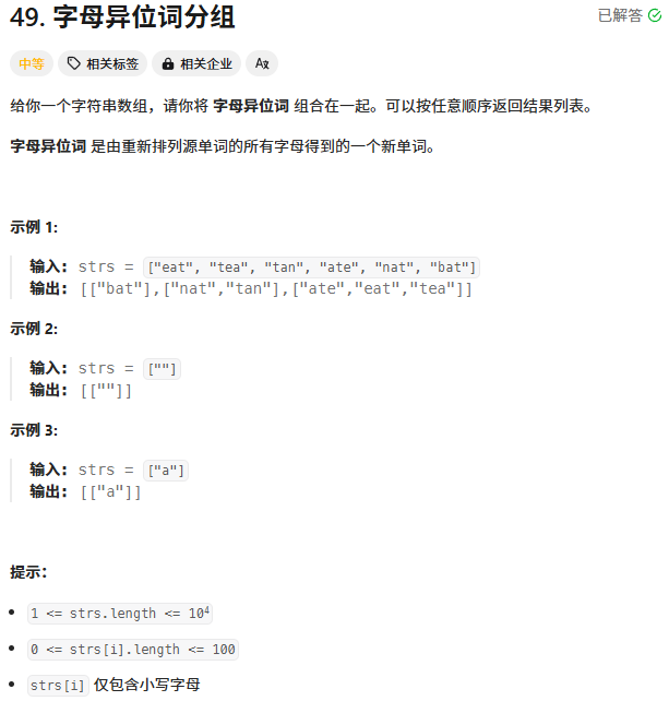 // 创建一个哈希表,key是排序后的字符串,value是与该排序字符串对应的字母异位词列表