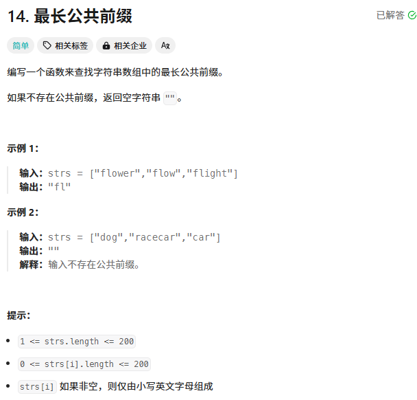 // 如果某个字符串的长度小于等于i,或者字符不匹配,返回从0到i的子串作为公共前缀