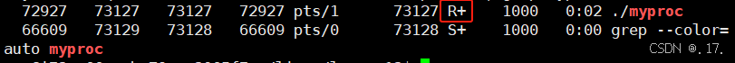 这段代码执行出来的进程状态是 R+ 运行状态,该程序会在 while(1); 无限循环中不断运行,占用 CPU,但没有任何实际的操作或输出。由于没有被阻塞、暂停或终止,它始终处于 运行状态(Running),并且在没有外部干预的情况下无法退出。