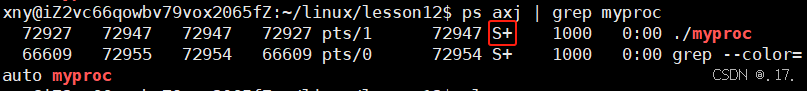 目前这段代码执行出来的进程状态是 S+ 睡眠状态(‘+’ 代表前台运行,暂时不用管),在这段代码中,printf 的执行涉及到终端输出的 I/O 操作。如果在输出期间终端忙碌或缓冲区满,操作系统会将进程暂时挂起,进入 可中断睡眠态(S)。