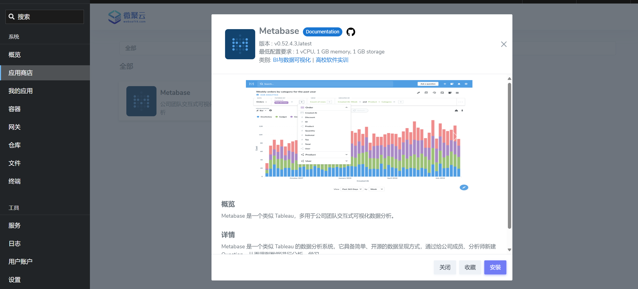 • 「一键式镜像部署」:集成 120+ 主流教学工具(如 Metabase、Moodle 等),自动识别服务器配置并完成环境部署。