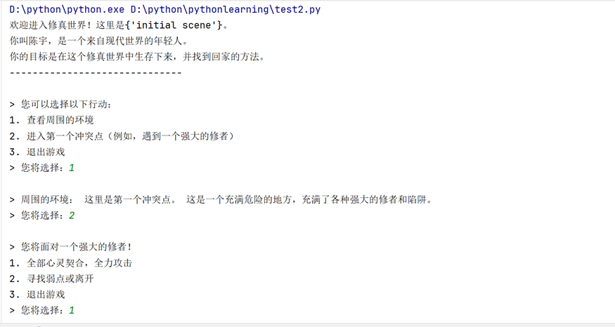 在游戏中,玩家将体验到一个沉浸式的修真世界。通过文字描述、选择决策和AI驱动的剧情生成,玩家能够在这个虚拟世界中进行自由探索,感受从修炼到突破的全过程。