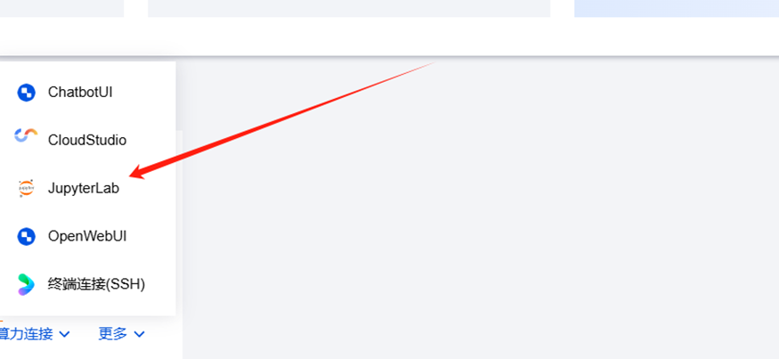 在这里,我选择将DeepSeek-R1部署在云端,并通过命令行方式进行调用。第一步,部署时选择“JupyterLab”环境。