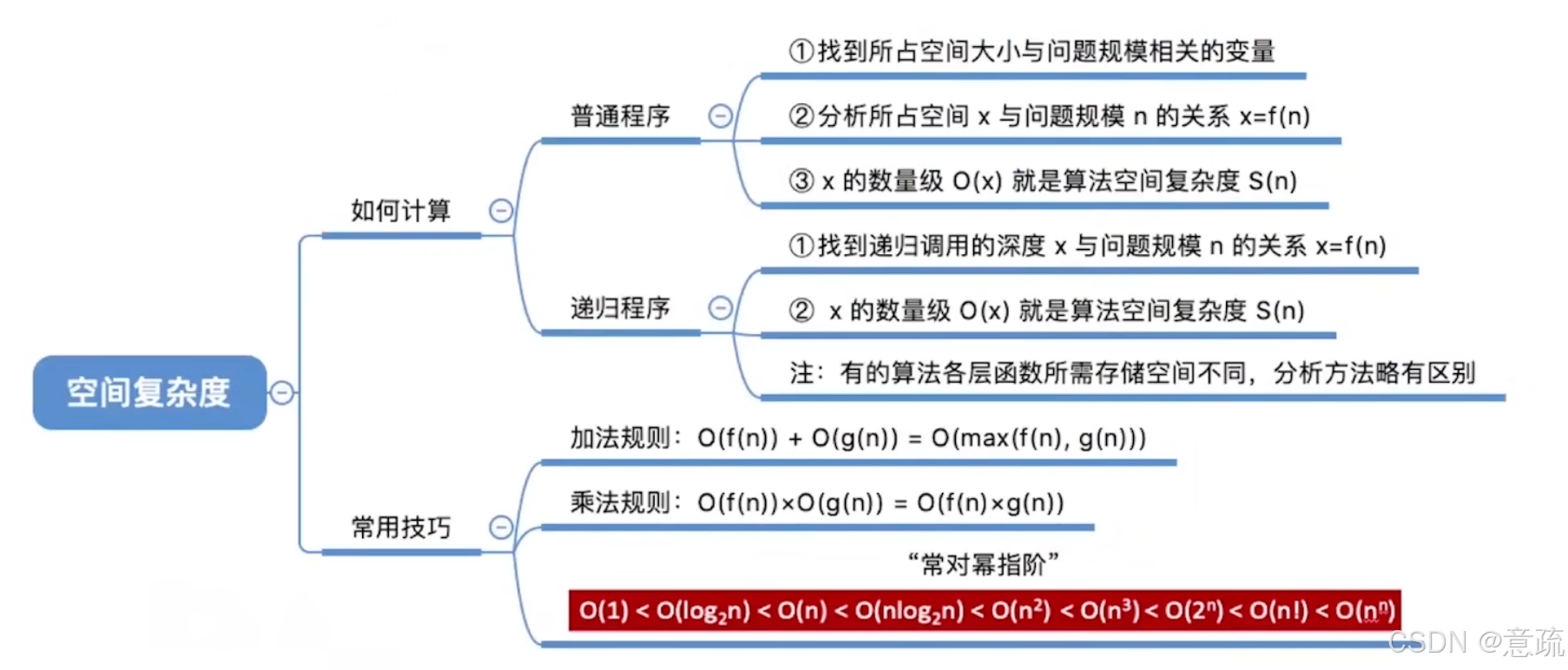 我们其实可以看出 如果在函数当中我们定义了某种变量,但是这个变量所占的空间和问题规模n没有关系的话 这个类型的变量 最多也就是在我们的表达式当中 给我们增添一个常数项 但我们最终要转换成大O表示法 也就是关心阶数的 所以这种常数项 对我们最终结果不会产生任何结果 因此:我们只需要关注存储空间的大小与问题规模相关的变量就可以了