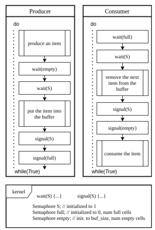 full如果信号量为零,则缓冲区中没有等待的项目。消费者被置于睡眠状态。