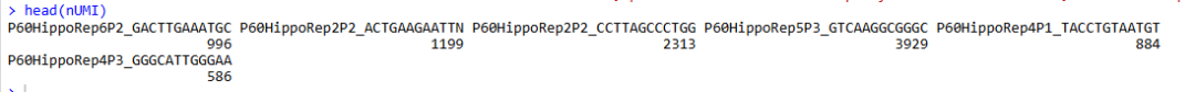 .. ..- attr(*, "names")= chr [1:510] "P60HippoRep6P2_GACTTGAAATGC""P60HippoRep2P2_ACTGAAGAATTN""P60HippoRep2P2_CCTTAGCCCTGG""P60HippoRep5P3_GTCAAGGCGGGC"...