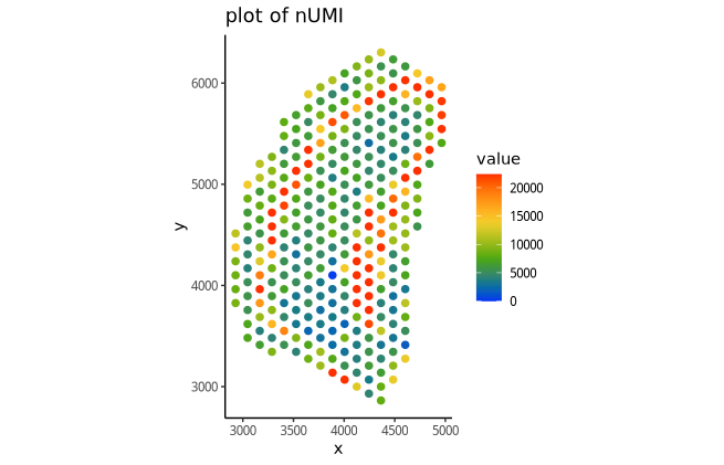 空间每个spot中表达的nUMI值:
