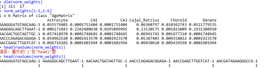 .. ..- attr(*, "names")= chr [1:313] "AAAGGGATGTAGCAAG-1""AAAGGGCAGCTTGAAT-1""AACAACTGGTAGTTGC-1""AACCCAGAGACGGAGA-1"...