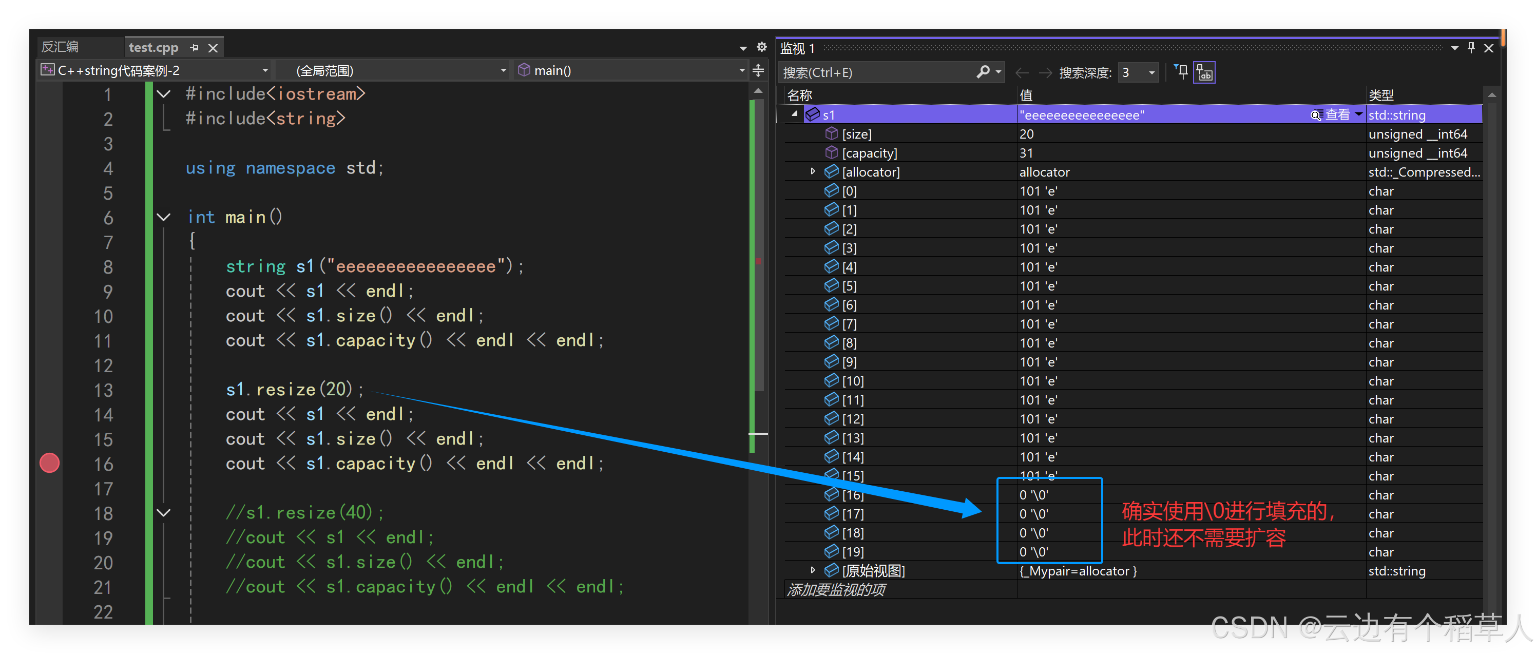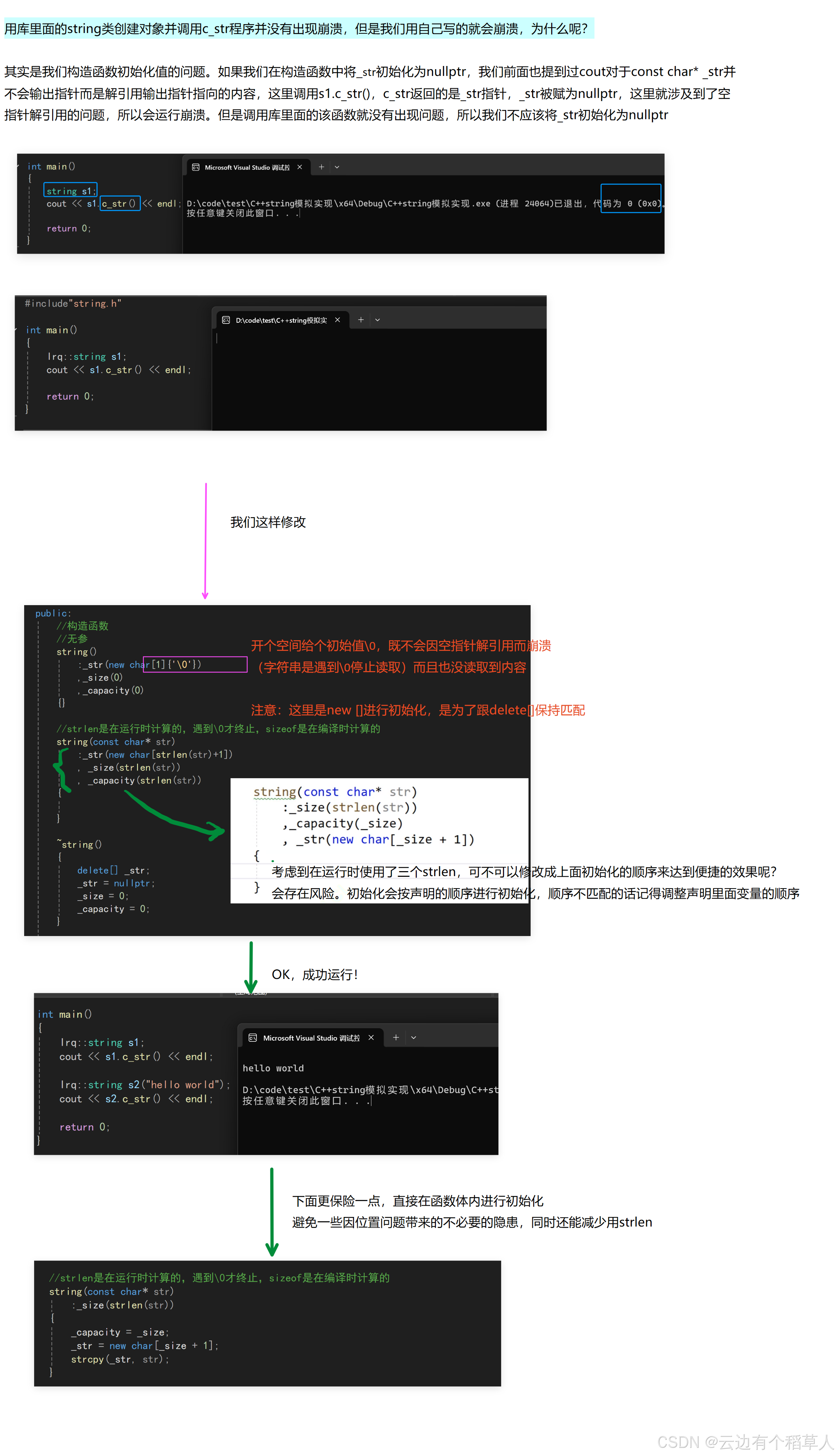 string(const char* str = "");//这里给一个缺省值直接代替无参的,常量字符串结尾默认有一个\0,也不需要再给\0