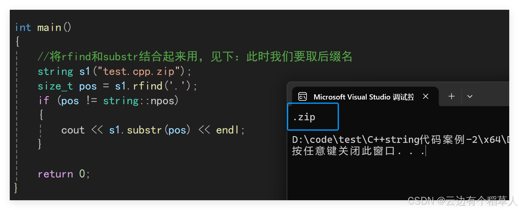 //将rfind和substr结合起来用,见下:此时我们要取后缀名