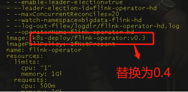 kubectl editdeployment -n {命名空间} flink-operator-xxx -oyaml