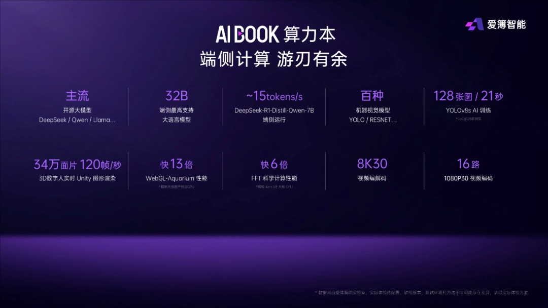 据爱簿智能介绍,AIBOOK 不是 AIPC 的升级迭代,而是一个能装进背包的“AI 实训室”,是面向开发者、AI 爱好者和大学生的理想 AI 学习与开发工具。