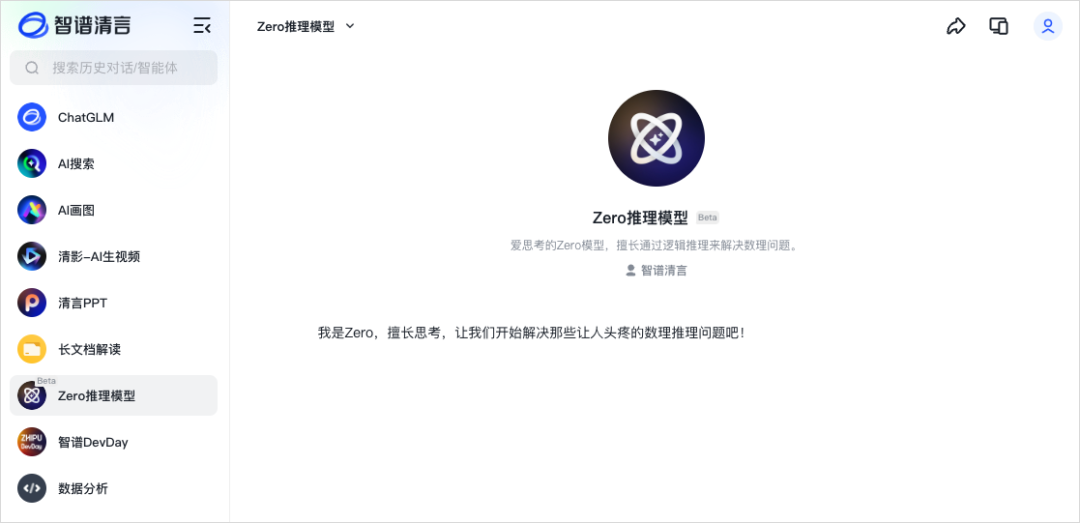 当你登录智谱清言的时候,就能看到他们上线了这个Zero推理模型,不过是以智能体的形式出现的。
