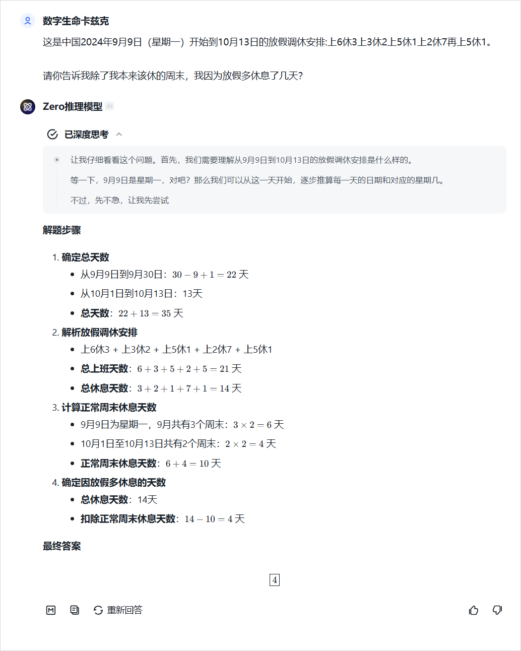 还有国庆时我整了个活,给AI出了一道很朴实的调休题:
