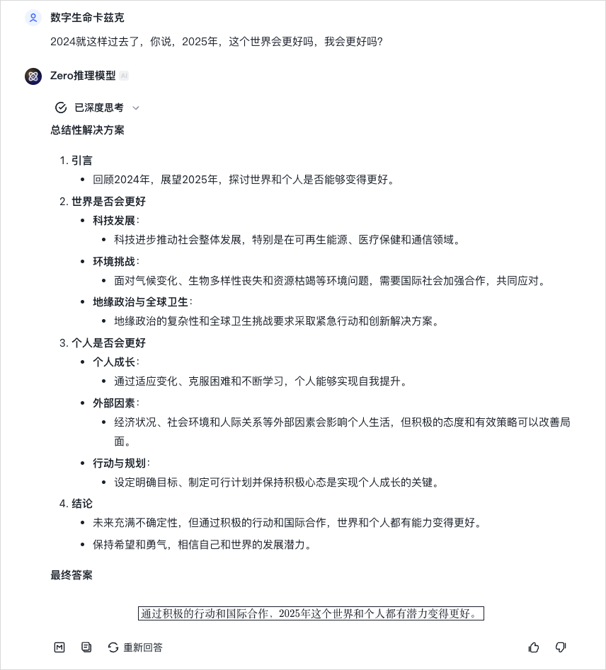 而Zero作为2024收官模型,就直接丝滑把答案拿下了。