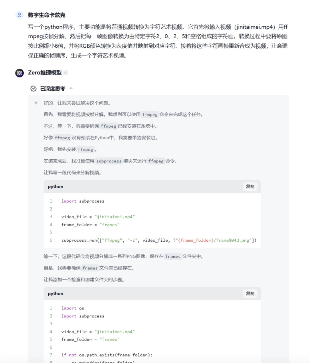 有点可惜的是智谱的zero还没有办法直接在对话里呈现代码的结果,拿到代码还得在本地跑。不过也多了一点开盲盒的惊喜。