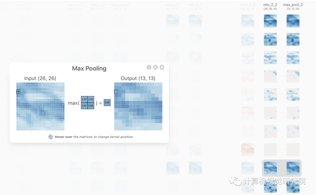 项目作者已经给你做好了一个可以交互的界面,你只需要打开浏览器加载出这个界面就可以了。CNN Explainer 使用 TensorFlow.js 加载预训练模型进行可视化效果,交互方面则使用 Svelte 作为框架并使用 D3.js 进行可视化。最终的成品即使对于完全不懂的新手来说,也没有使用门槛。下面我们来看一下具体的效果。