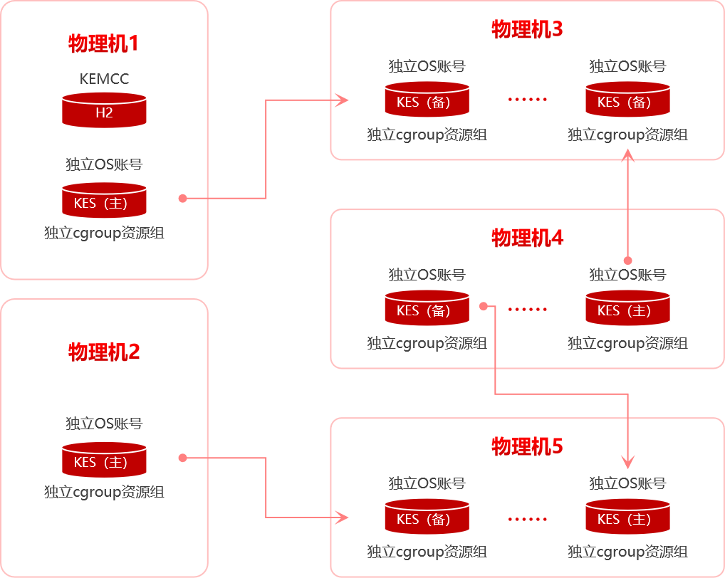 基于数据库实例的多租户方案,利用了KingbaseES数据库支持多实例的特性,在单物理机上部署多个独立实例,每个实例即租户,支持 Oracle 、MySQL等不同兼容模式。同时,基于KEMCC结合资源组管理实现 CPU / 内存等资源的隔离和分配,确保数据安全和隔离。